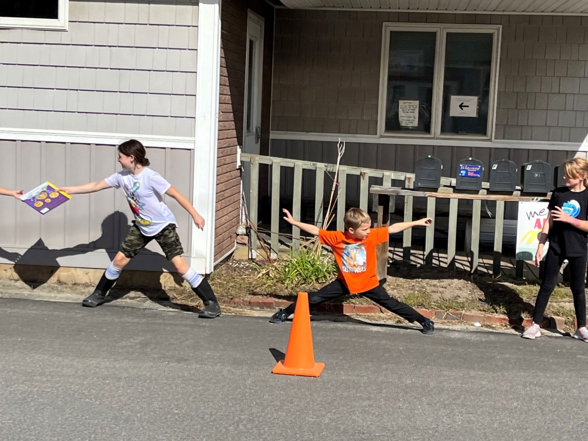 Bowdoinham Community School students moved 900 books up Main Street on Wednesday afternoon.