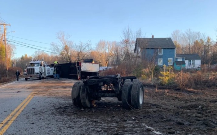 Rig crashes in New Gloucester; driver charged with OUI, suspended license