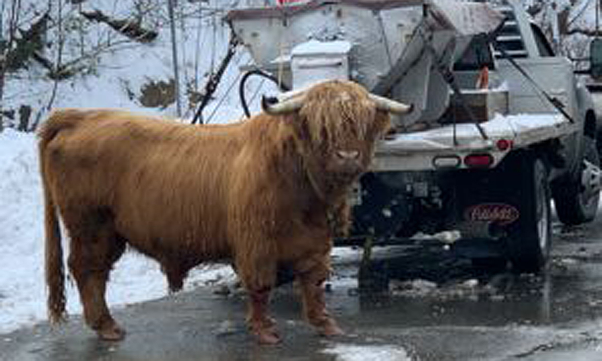 The cattle driver, a plow truck driver, a farmer and police eventually corralled the bovine into the trailer.