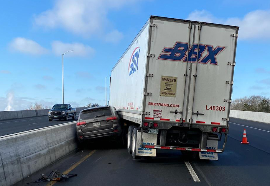The crash occurred in the southbound lanes near mile marker 1 in Kittery about 9:20 a.m. Wednesday, when Trooper Robert Flynn stopped to assist a broken-down flatbed truck.
