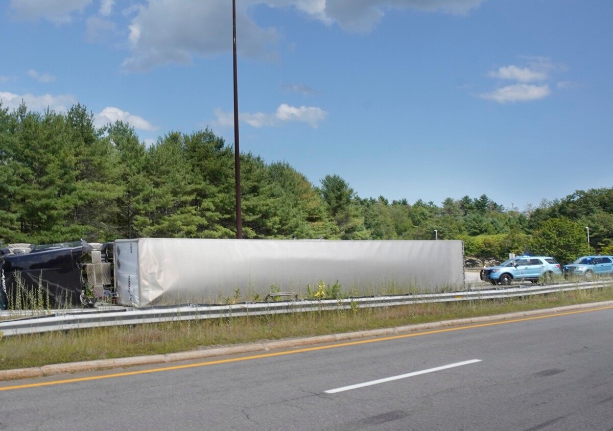 Tractor-trailer rollover cleared from Maine Turnpike spur in Falmouth