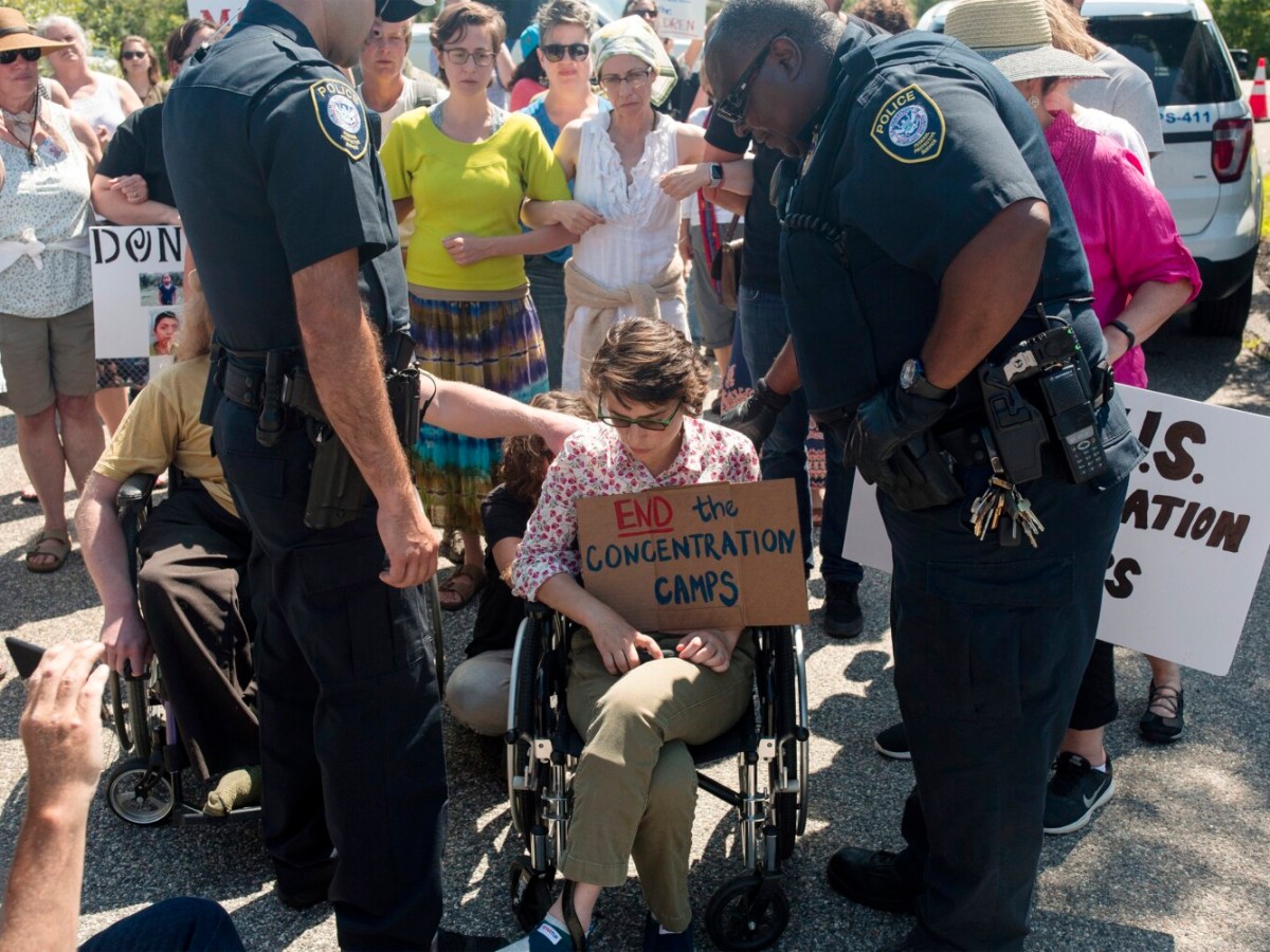 Protesters at demonstrations in South Portland and Portland on Friday decry such policies as family separations and the treatment of migrants held in detention centers.