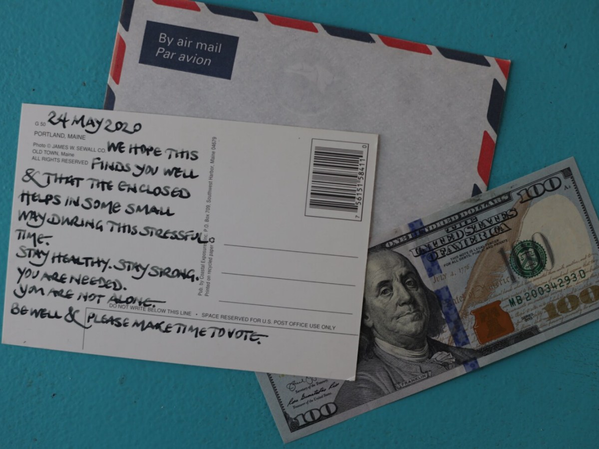 An anonymous Portland couple is making an impact with the help of a friend, who delivers envelopes for them with a $100 bill and a message of support.