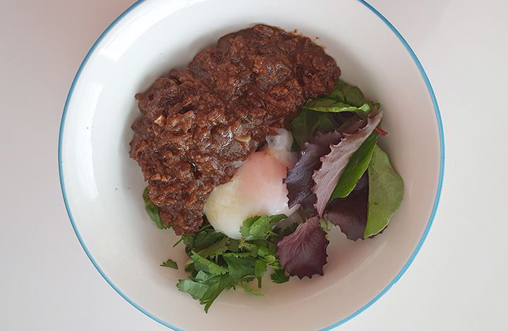 A Japanese rice bowl with lamb and egg from a London chef