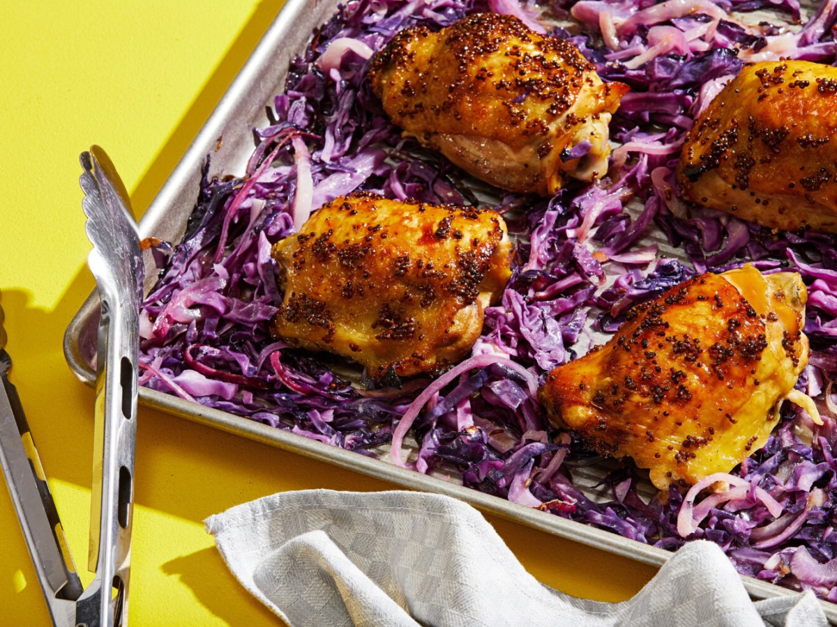 Crispy-skinned sheet-pan chicken and cabbage scores high on flavor