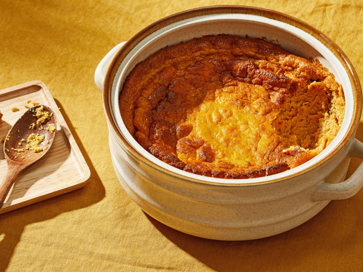This creamy pumpkin spoon bread flirts with sweet and savory