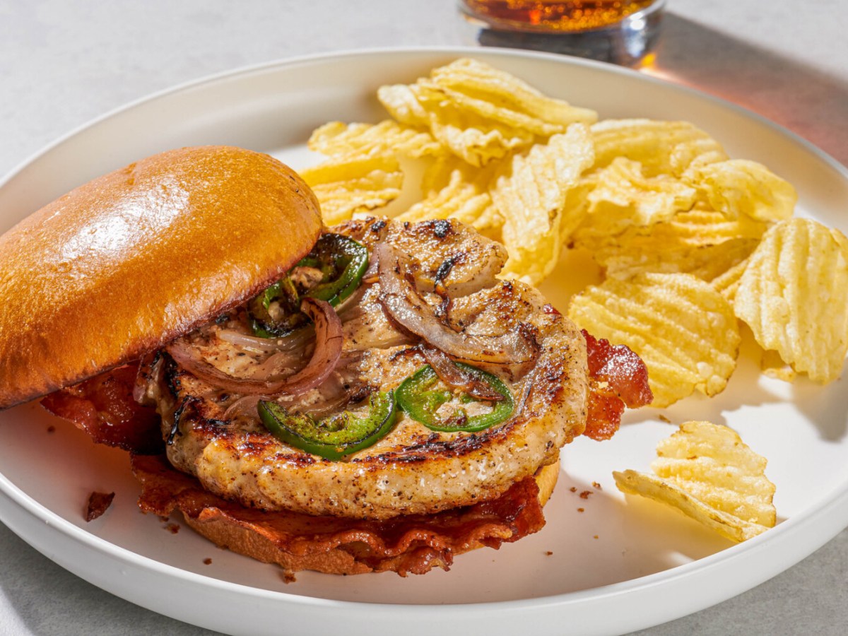 Cooking this burger in bacon fat keeps the ground chicken moist and flavorful.