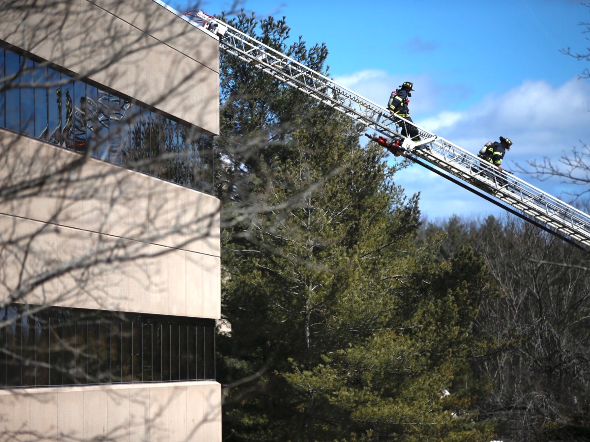A fire started on the roof of the insurance company’s office Saturday morning.