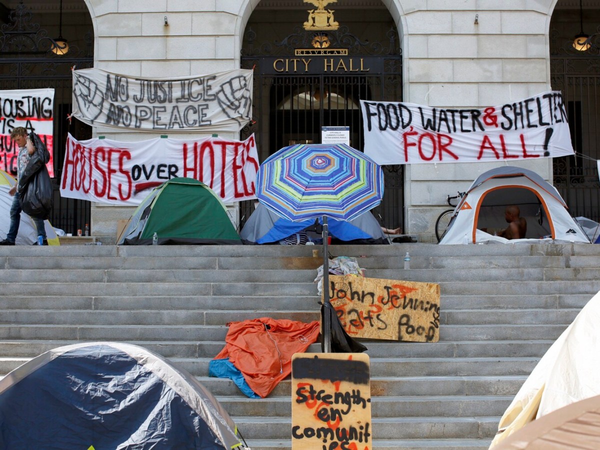 Portland closed the building Monday, and discussed the encampment during a workshop Monday night.