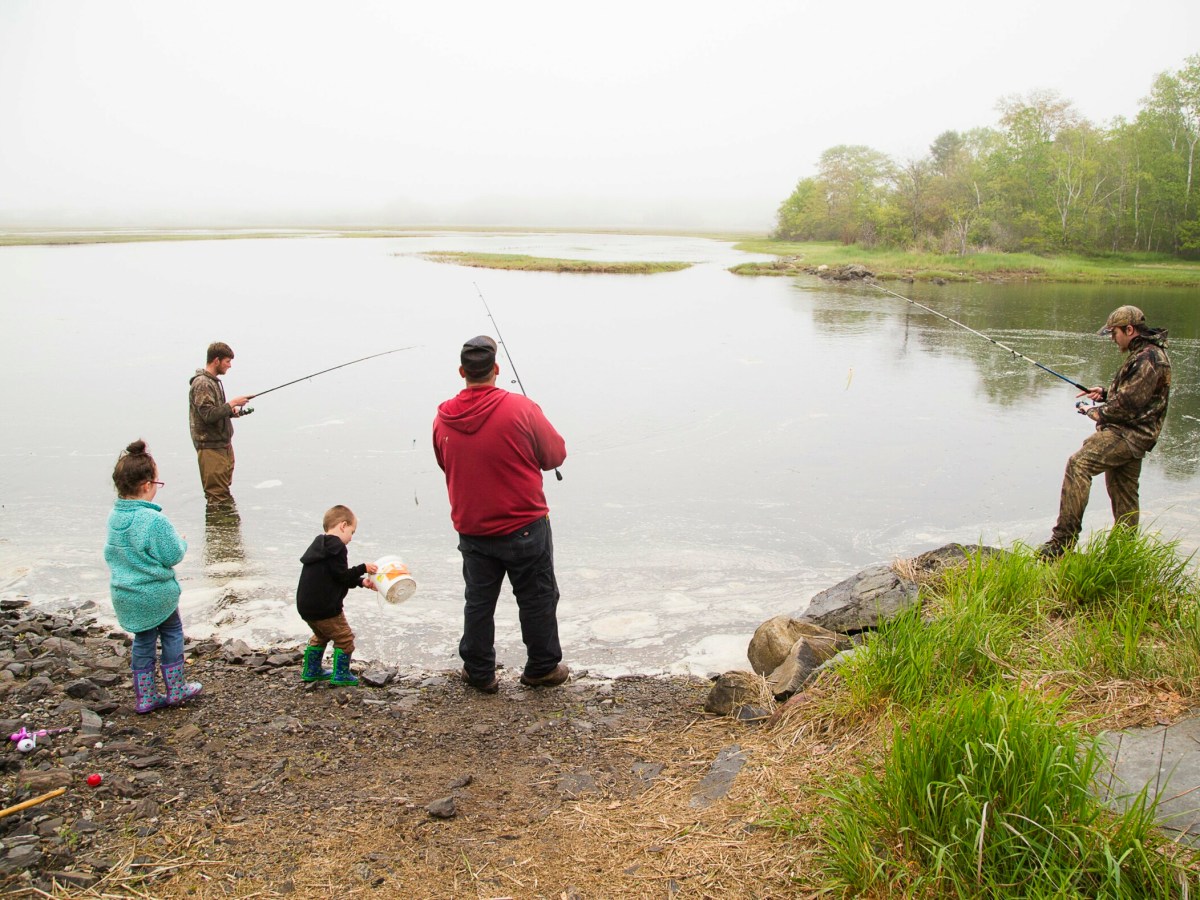 No licenses were required at fishing holes around the state this weekend, and even a misty Sunday morning found anglers young and old out toting their poles.