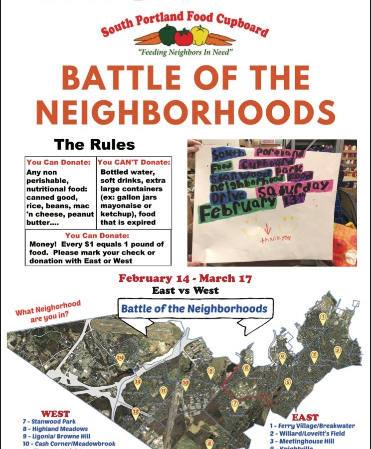 The South Portland Food Cupboard organizes the annual event, encouraging residents to donate nonperishable food items or money to support those in need during the winter months, with this year’s competition featuring an East vs. West format.