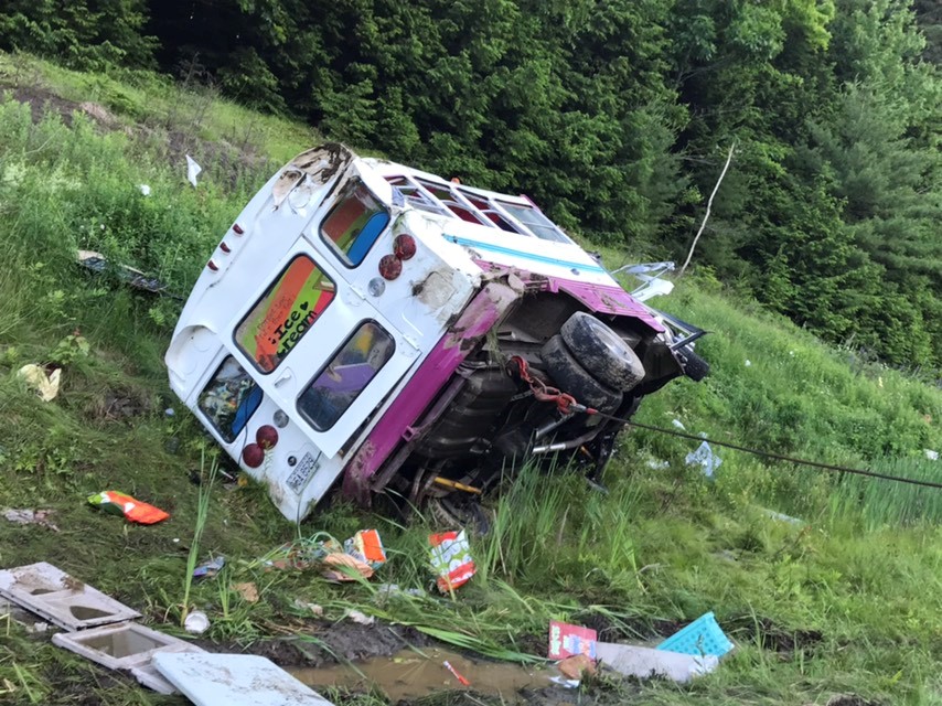 Owner of Chickadee Tree Service George Gray, 66, of Farmingdale, suffered minor injuries and was ticketed for operating a defective motor vehicle.