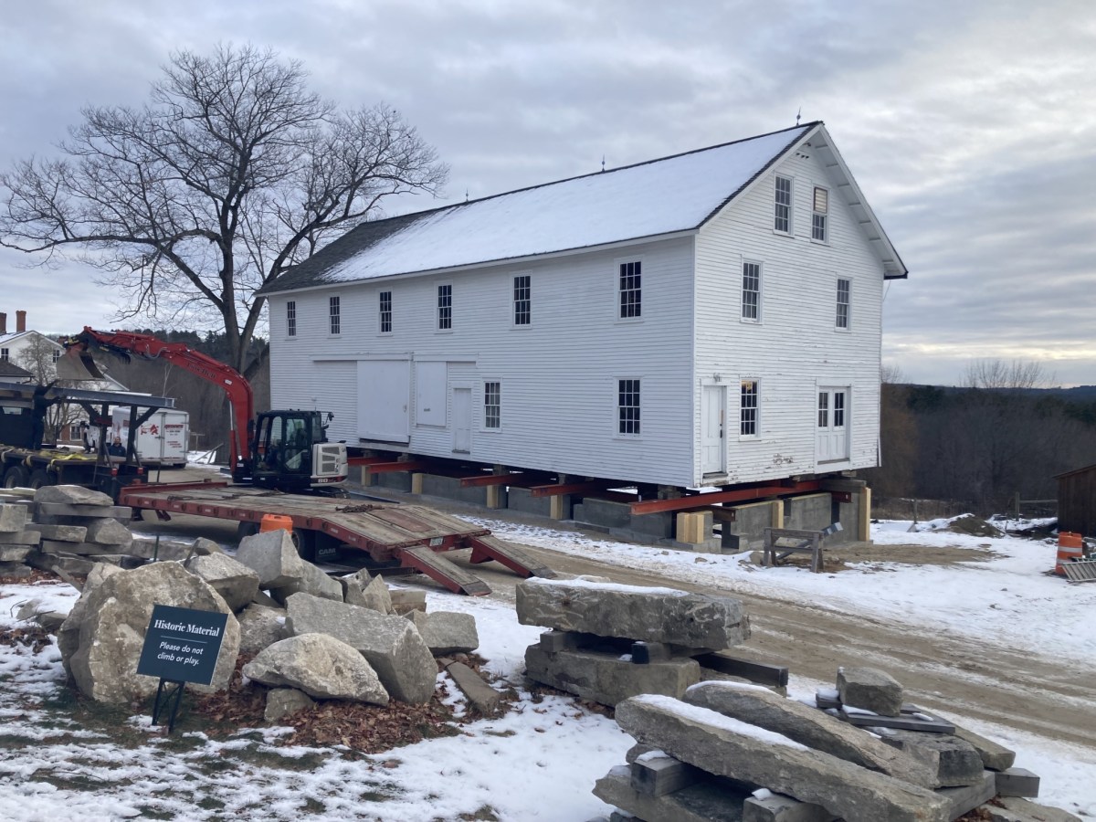 Sabbathday Lake Shaker Village celebrated a major milestone in its years-long herb house project – lowering the building onto its new foundation.