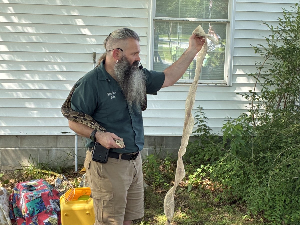 Joshua Sparks, at Sparks’ Ark Animal Services, cares for exotic creatures at his New Gloucester home, and does up to three or four public events each day.