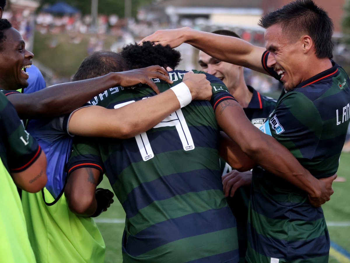 Despite being a man down for most of the match, Portland plays to a 2-2 tie in regulation and wins in penalty kicks against the Pittsburgh Riverhounds.