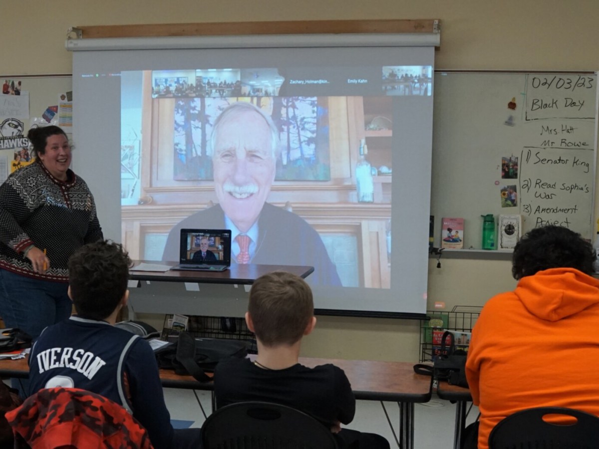 Sen. Angus King spent about 45 minutes online from his Brunswick home with STEM students in grades 7 and 8.