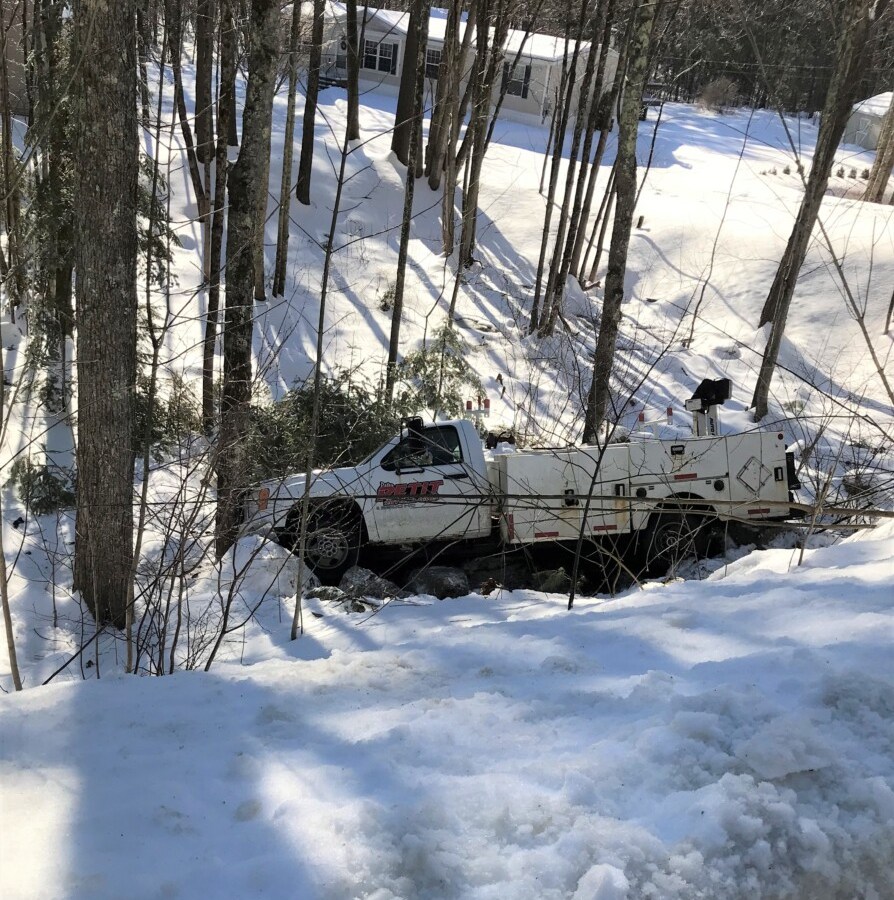 Truck sustains extensive damage.