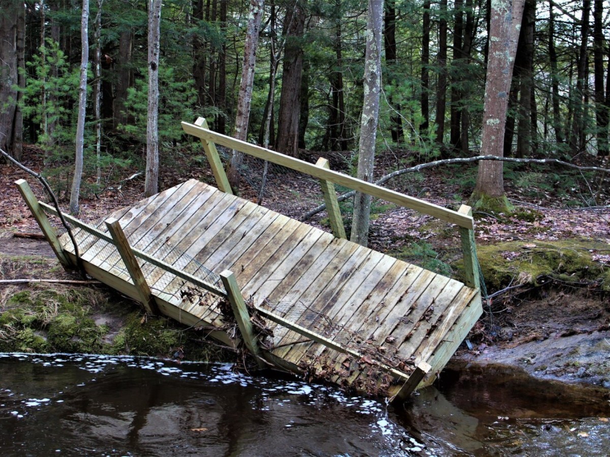 The wooden span was ripped off its footings as 4.9 inches of rain fell on Saco.