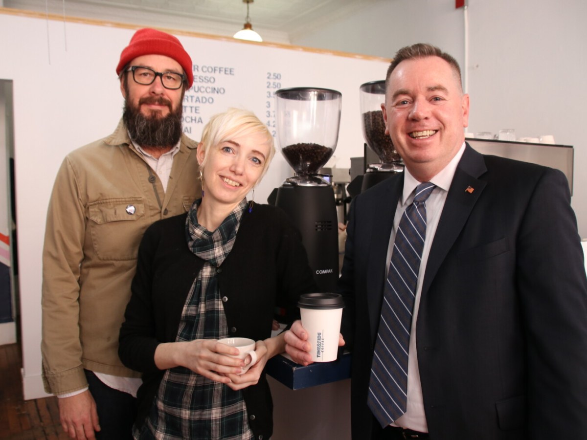 Time & Tide Coffee was the first stop on a tour of several downtown Biddeford businesses.