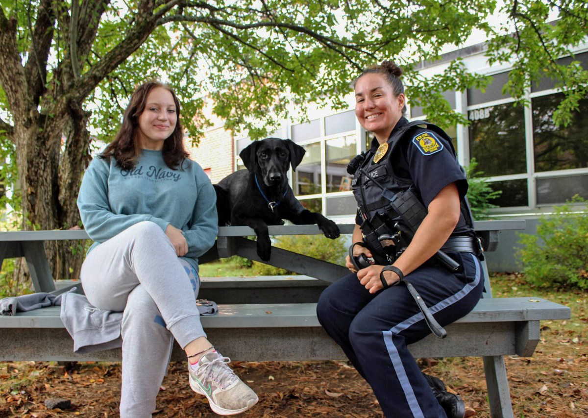 Desi, a 3-year-old black lab, was introduced to Brunswick Junior High School around the start of the school year in a collaboration between the school and local police department.