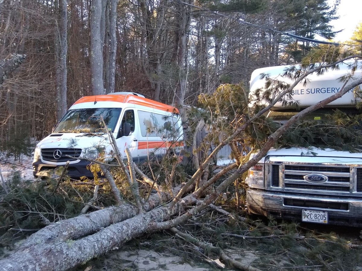 No animals or people were hurt, but Midcoast Humane’s mobile surgical unit was punctured by a tree branch.