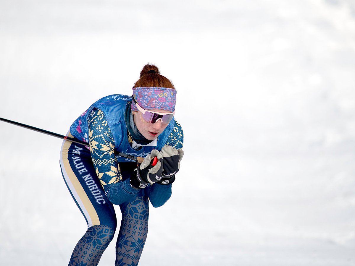 Nora McCourt of Mt. Blue and Beckett Cote of Messalonskee post the fastest times on the opening day of the Nordic state meet.