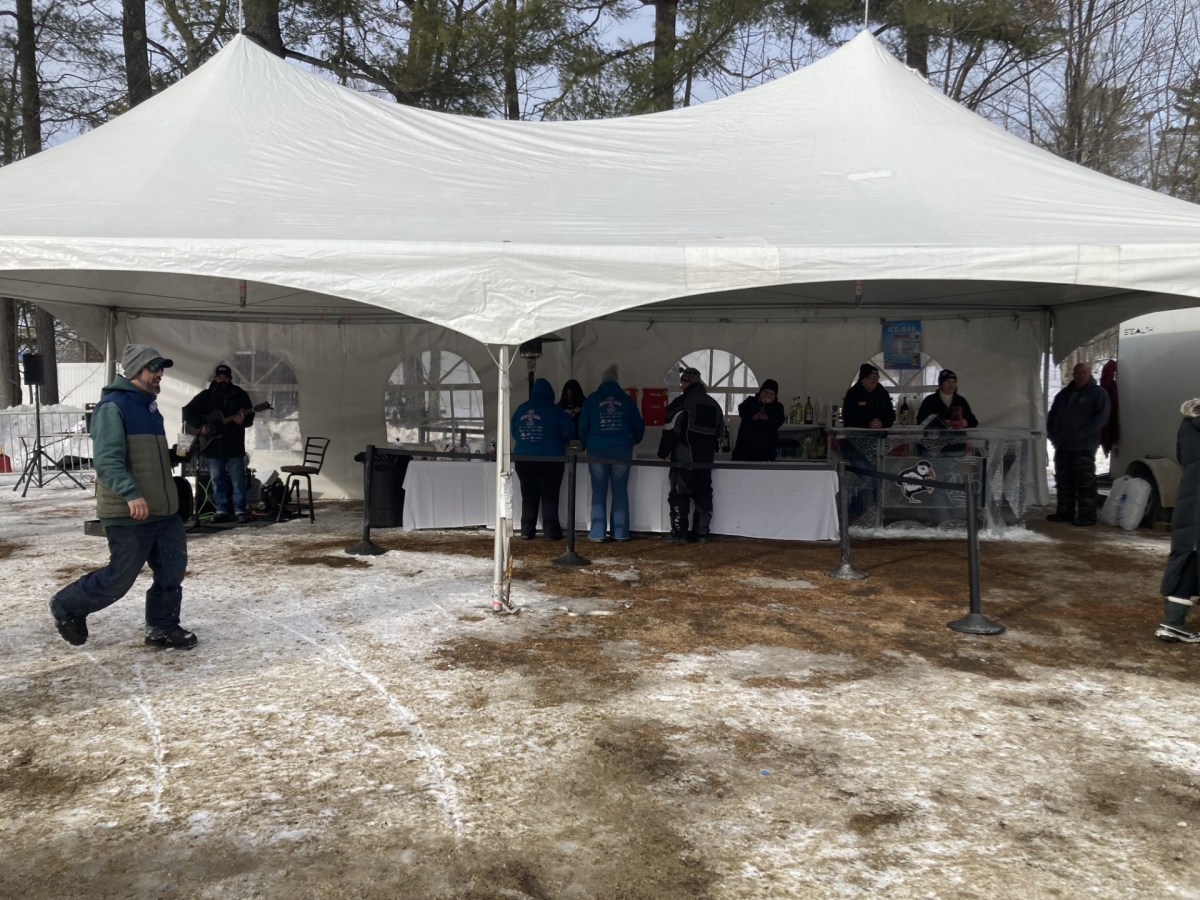 Highland Lake was frozen enough for ice fishing and the Freezing for a Reason charity polar dip.