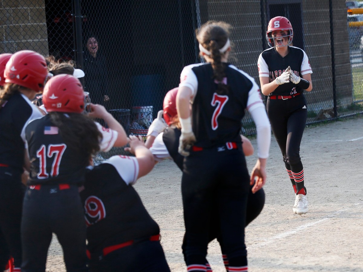 The Rams let a pair of commanding leads slip away but prevail in a nine-inning battle thanks to sophomore Mia McCarthy.