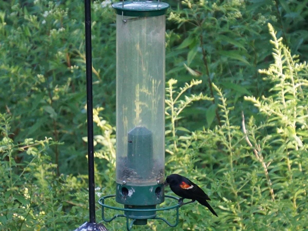 Why are red-winged blackbirds spending more time around feeders?