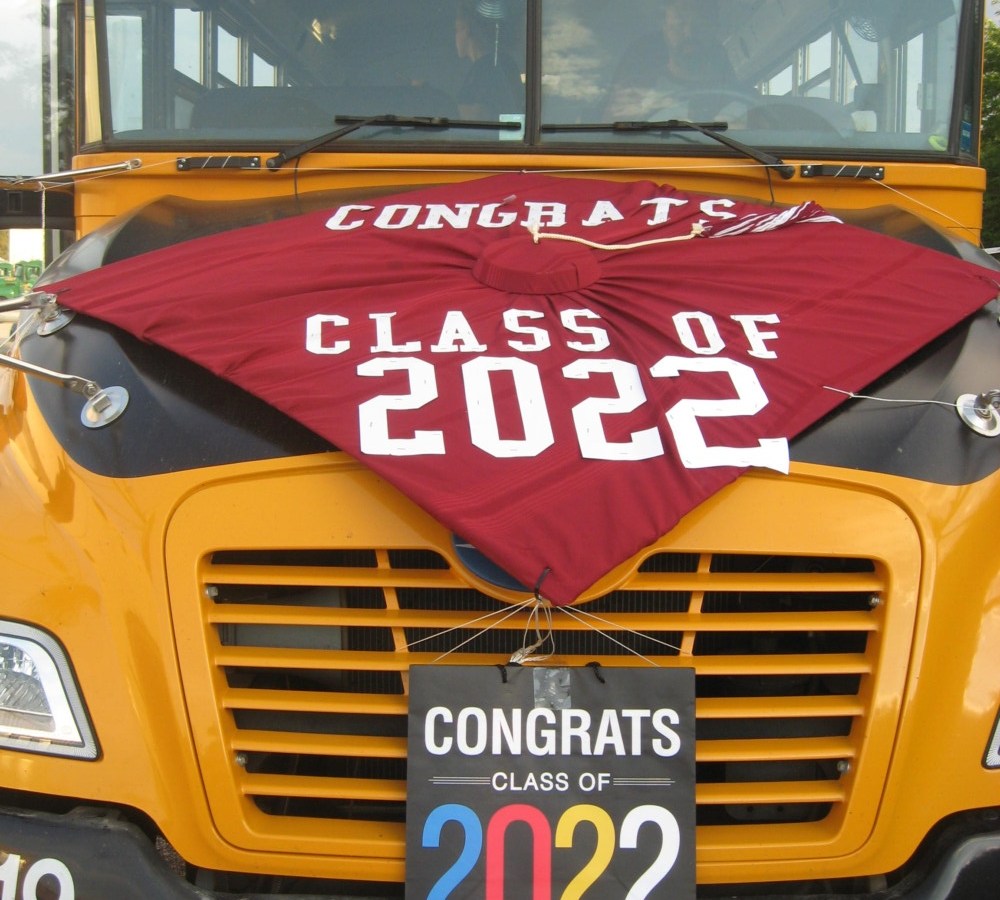 School buses, police cruisers and fire trucks accompanied vehicles decked out with balloons and congratulatory signs in a parade to honor the Gorham High School Class of 2022 following graduation ceremonies June 12.