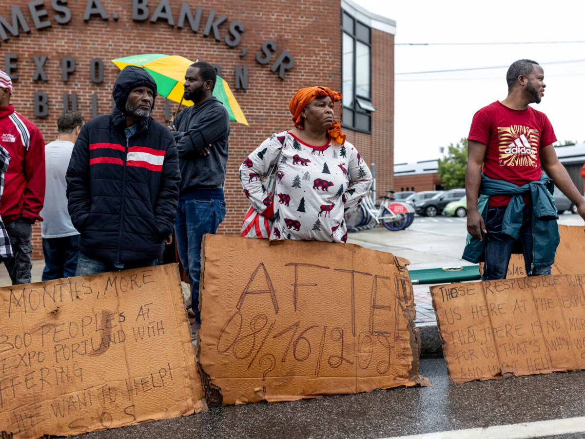 Asylum seekers protest conditions at Portland Expo, lack of long-term plan