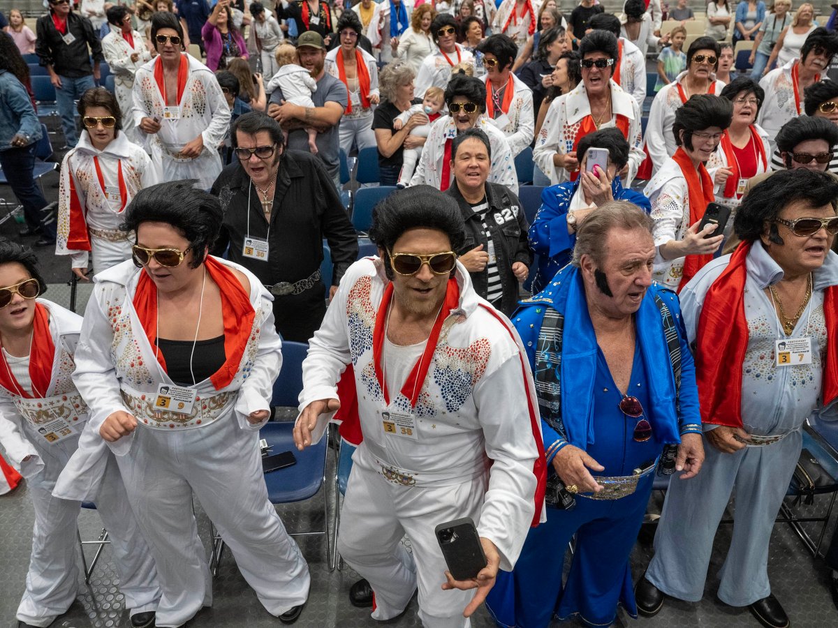 At least 896 fully costumed, sideburn-donning Elvises will have to sing “Hound Dog” in unison on Tuesday to top the existing record set in North Carolina.