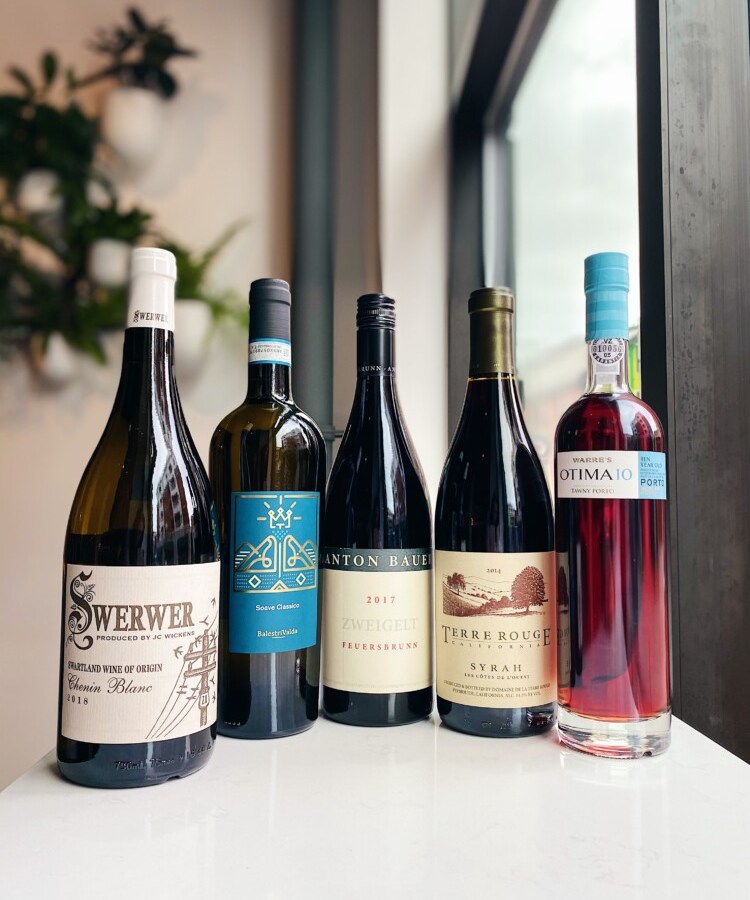 Maine wine shop owners recommend wines with low alcohol, high acidity or nutty notes to complement different courses.