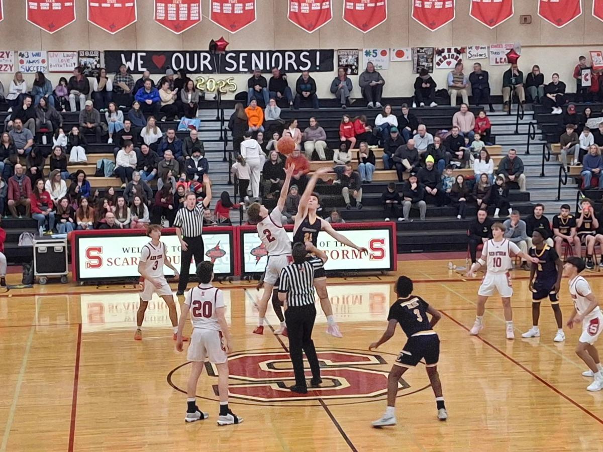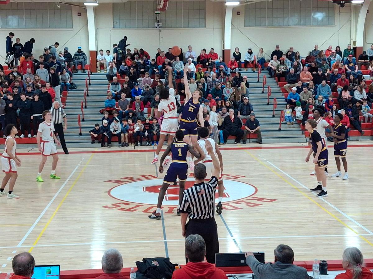 Red Riots shake off tough start, score 26 third quarter points and prevail, 59-47.