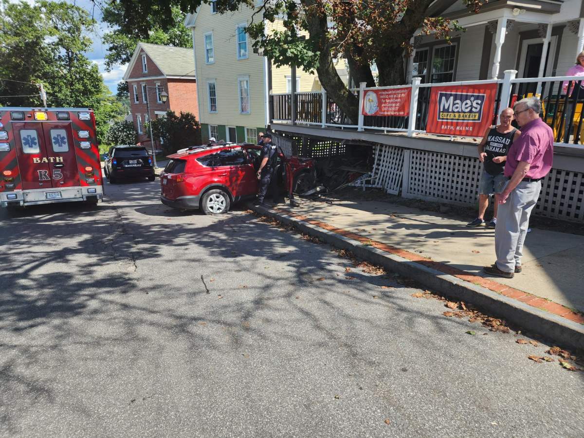 Two people were hurt in a crash at Mae’s Cafe & Bakery.