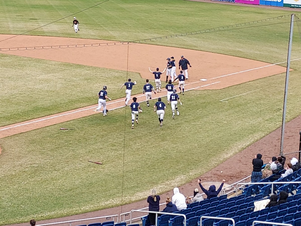 Senior Andrew Legere plays the hero with seventh inning two-run single.
