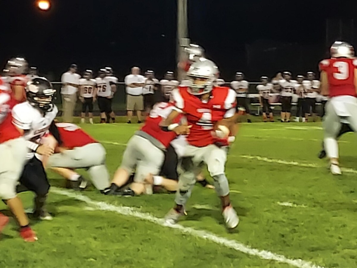 Red Riots run and pass their way past the Tigers, 59-34.