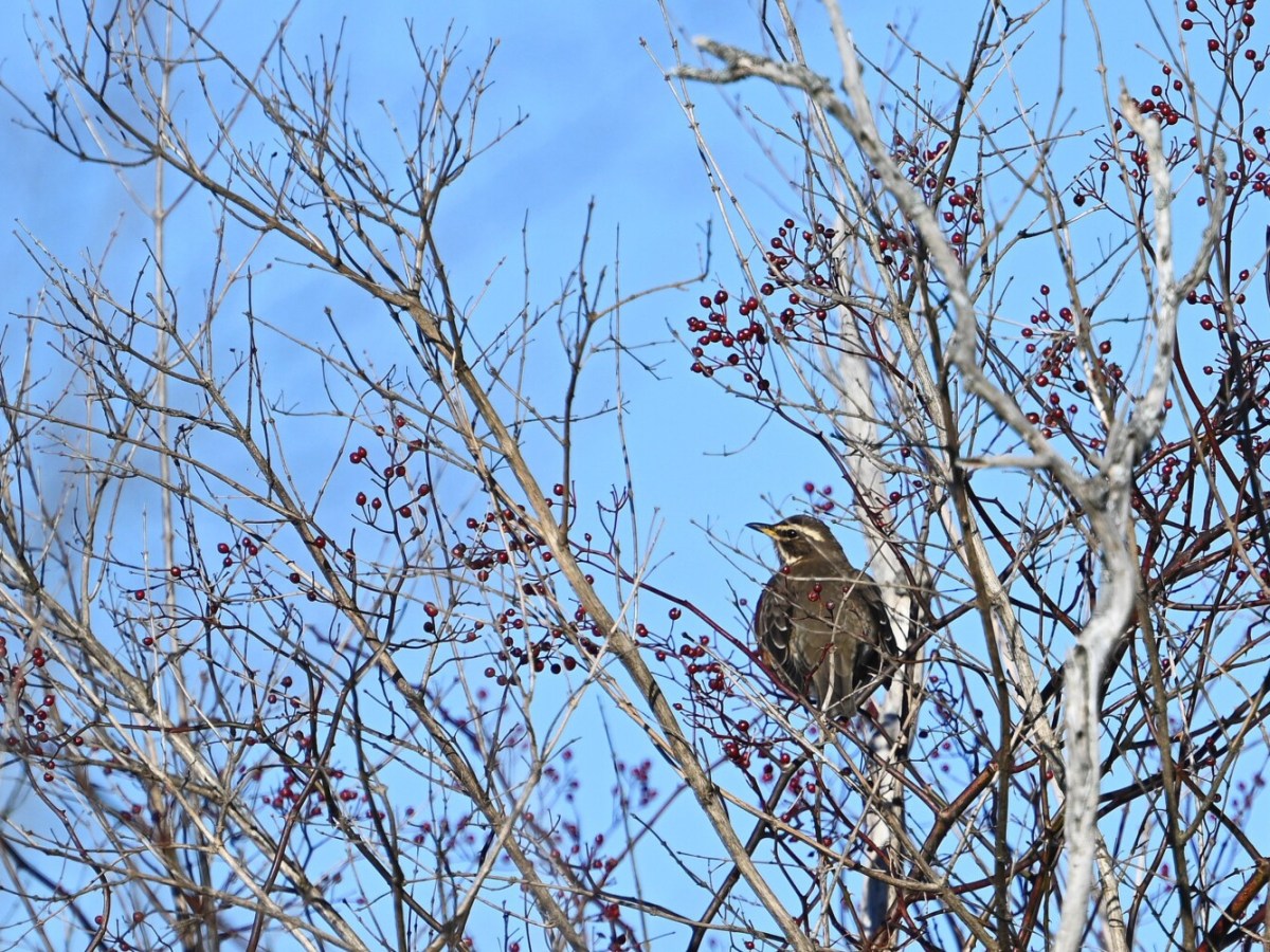 The redwing, also known as a European thrush, drew a small crowd of birdwatchers throughout the Northeast to Capisic Pond Park on Saturday.