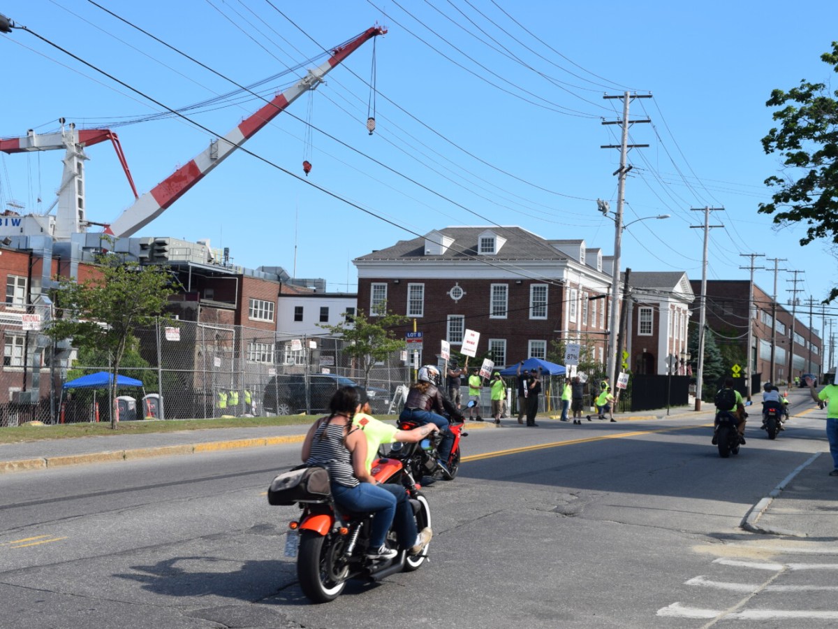 Photo: Motorcycle group roars past BIW union on strike