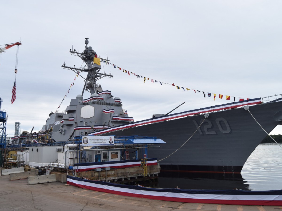 Bath shipyard christens new warship named for late Michigan senator