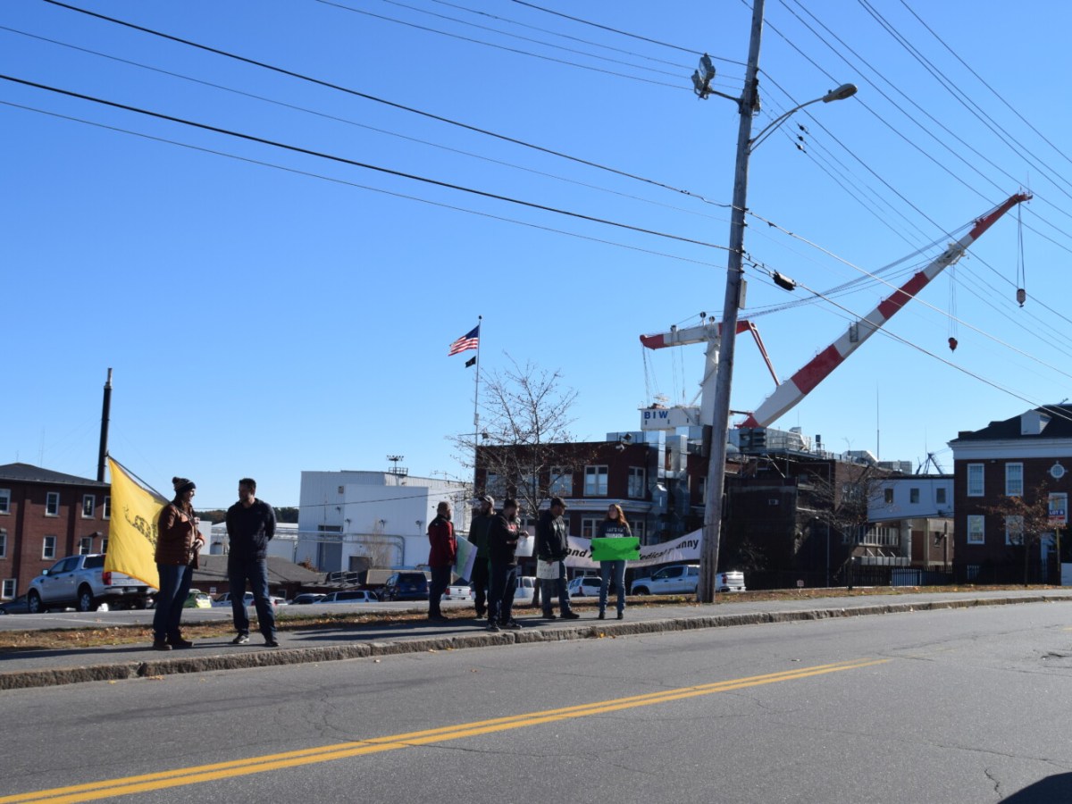 Small group protested vaccine mandate outside Bath shipyard over the weekend