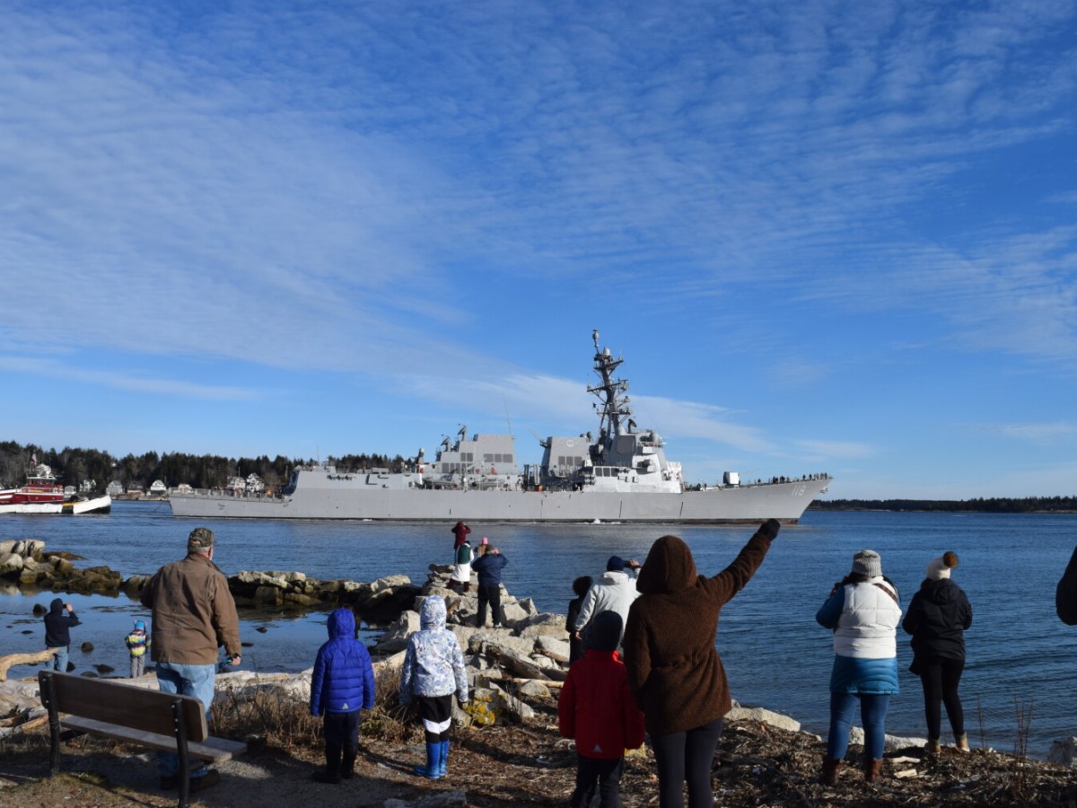 The future USS Daniel Inouye is the first ship in two years to leave BIW for sea trials.