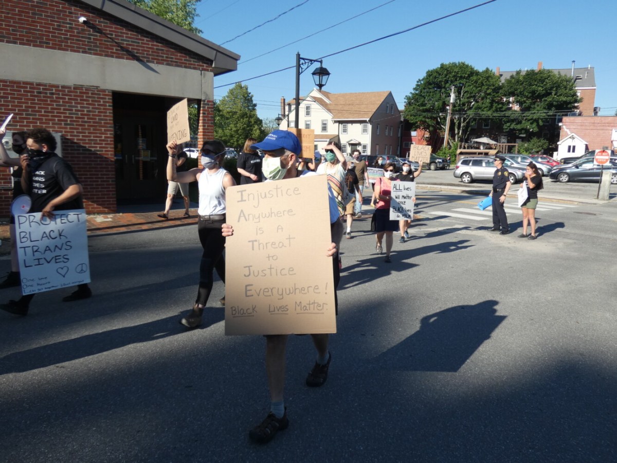 Bath police met with protest leaders Thursday and provided protection during their march through the city a week after a pickup truck drove into a group of protesters in a crosswalk last week.