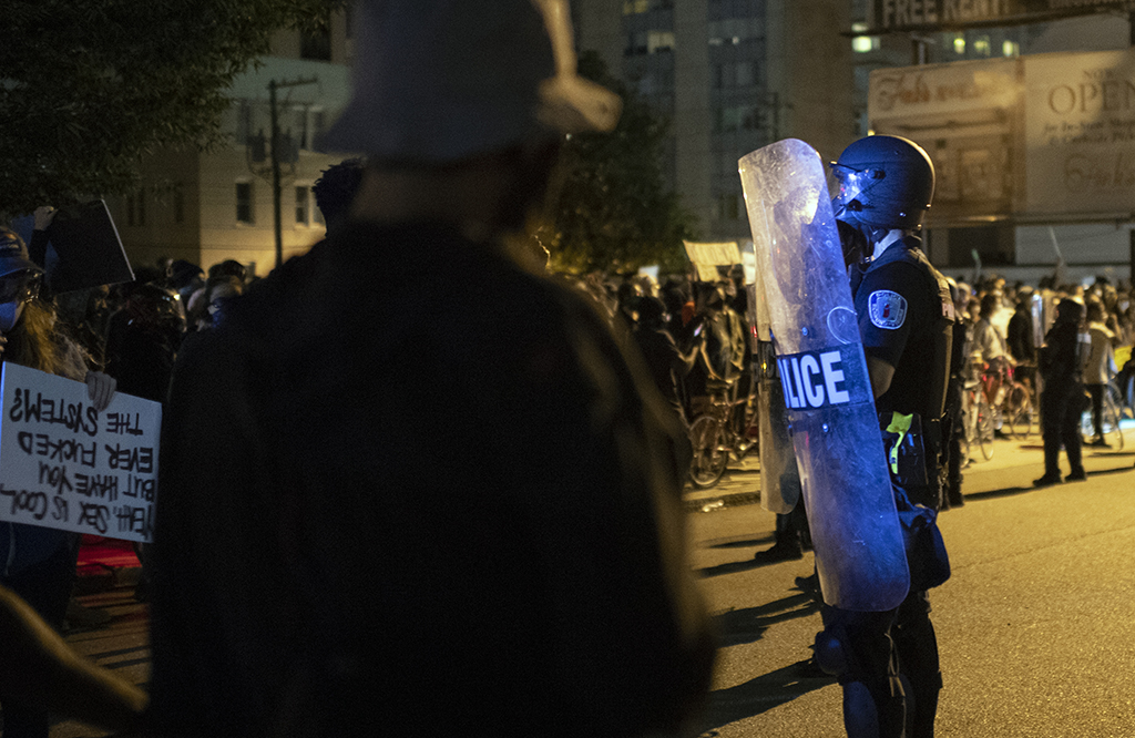 The confrontation comes on the second straight night of angry demonstrations in Richmond.