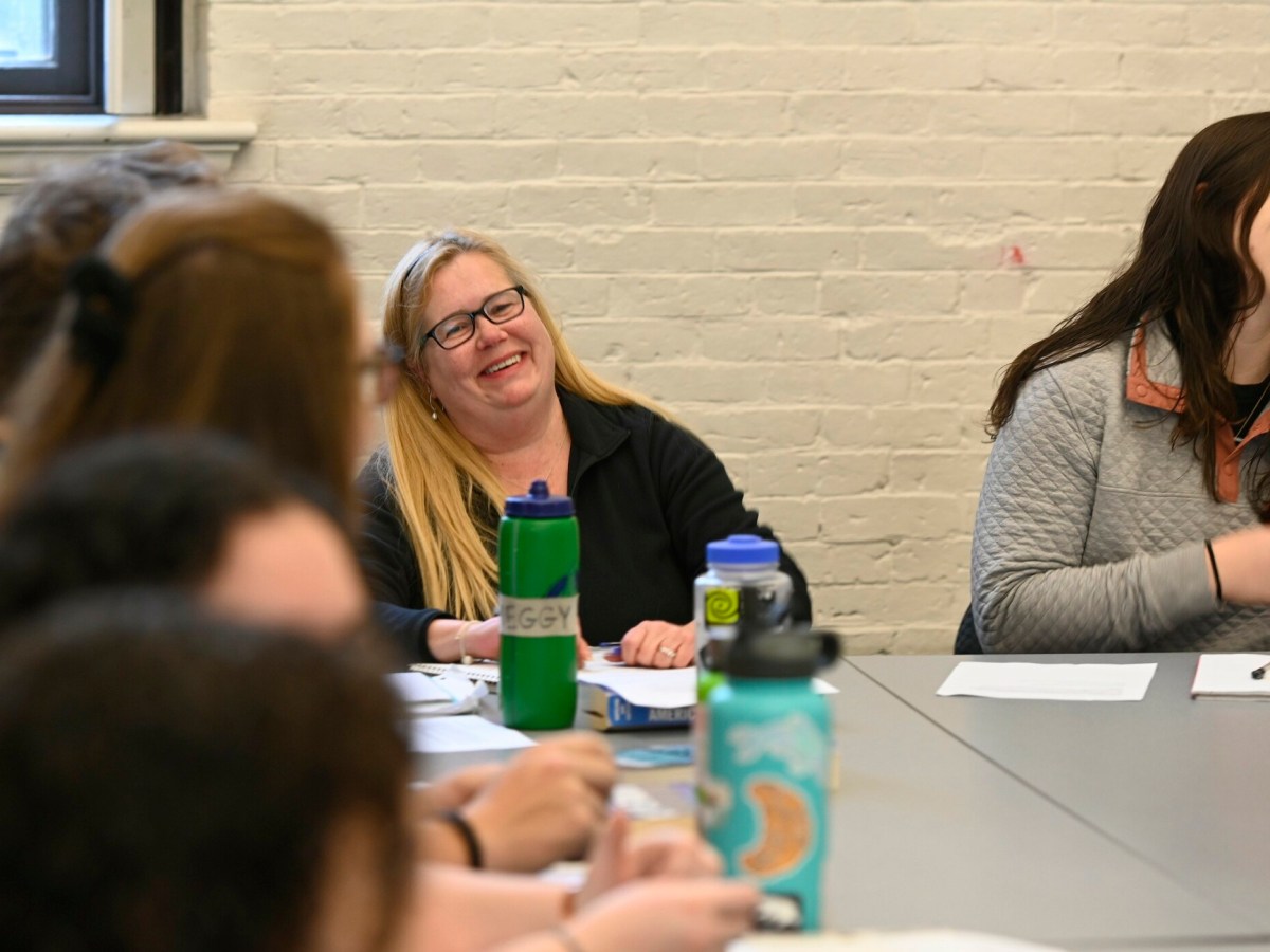 Lisa Bouffard, an administrator in Bowdoin College’s dining services department, will graduate in May with a double major in religion and gender and women’s studies. She earned her degree by taking one class per semester for 18 years.