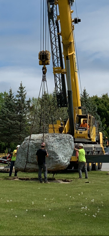 Memorial Rock moved front and center outside Brunswick High School