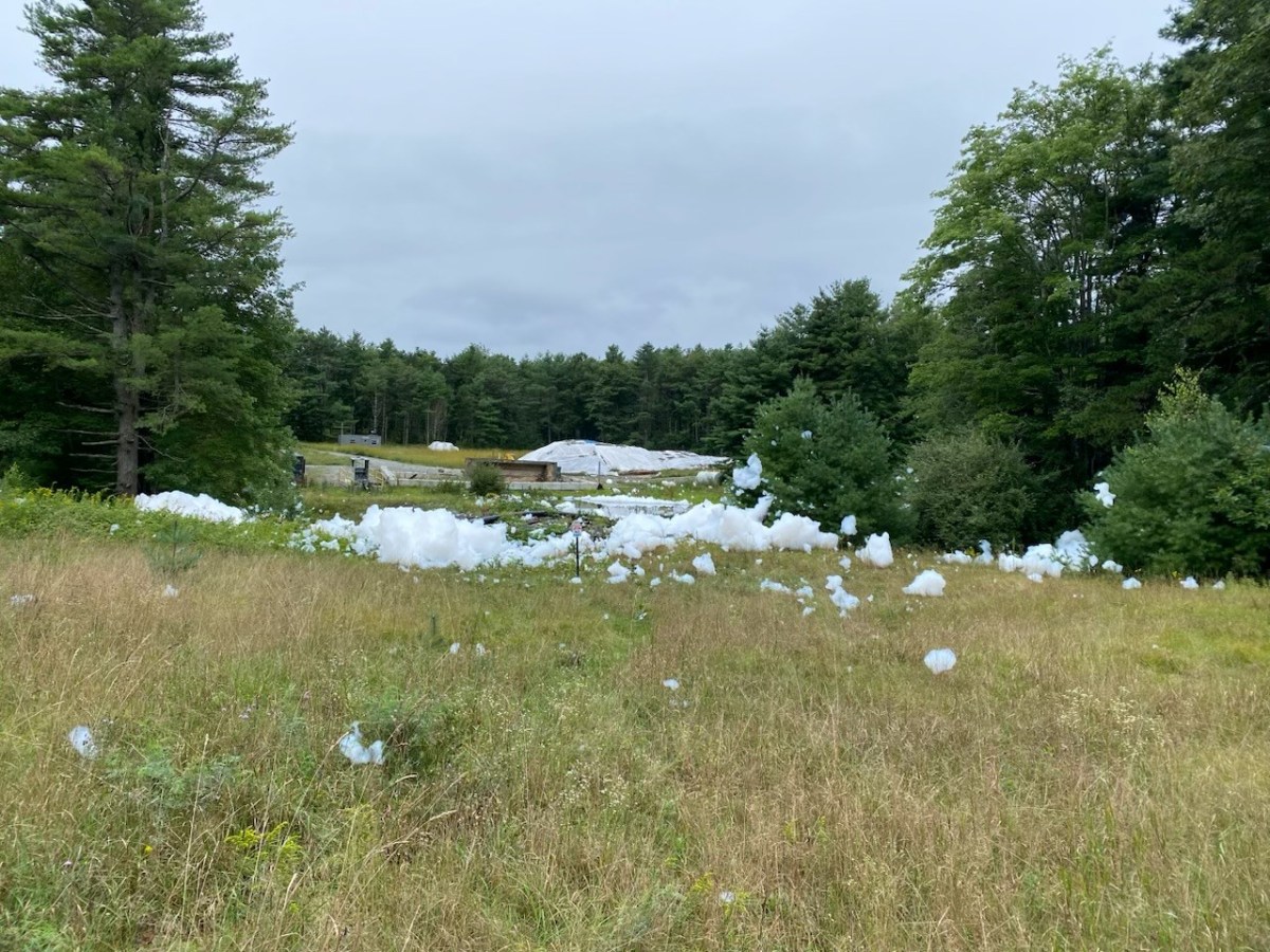 Officials say a fire suppression system malfunctioned, discharging 1,600 gallons of firefighting foam concentrate – 4 to 5 feet deep in some places – at the former Naval Air Station.