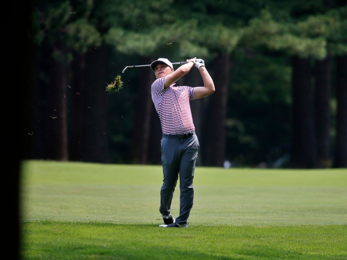Cole Anderson, an 18-year-old from Camden, grinds his way to a 1-under 69 in the second round at Portland Country Club.
