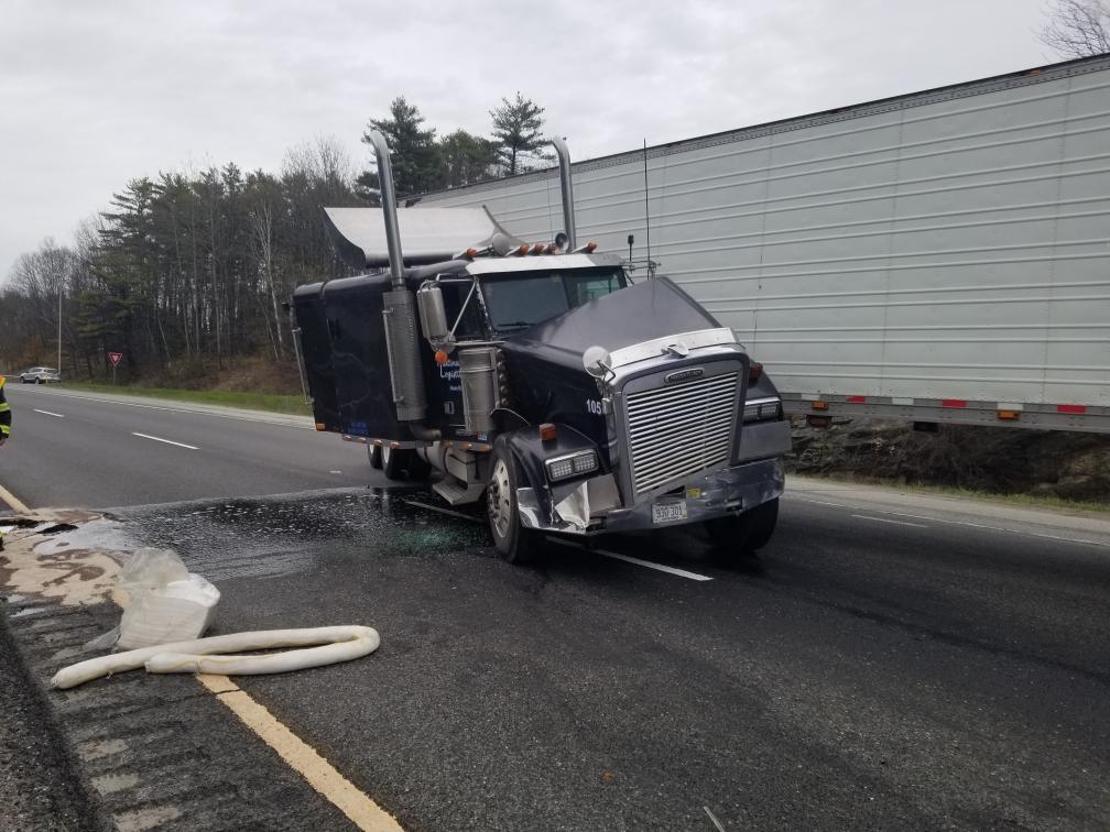 No one was injured when a tractor-trailer jackknifed and blocked Interstate 295 north in Falmouth on Monday afternoon.