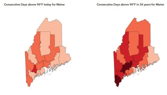 New study predicts twice as many hot summer days in Maine by 2053.